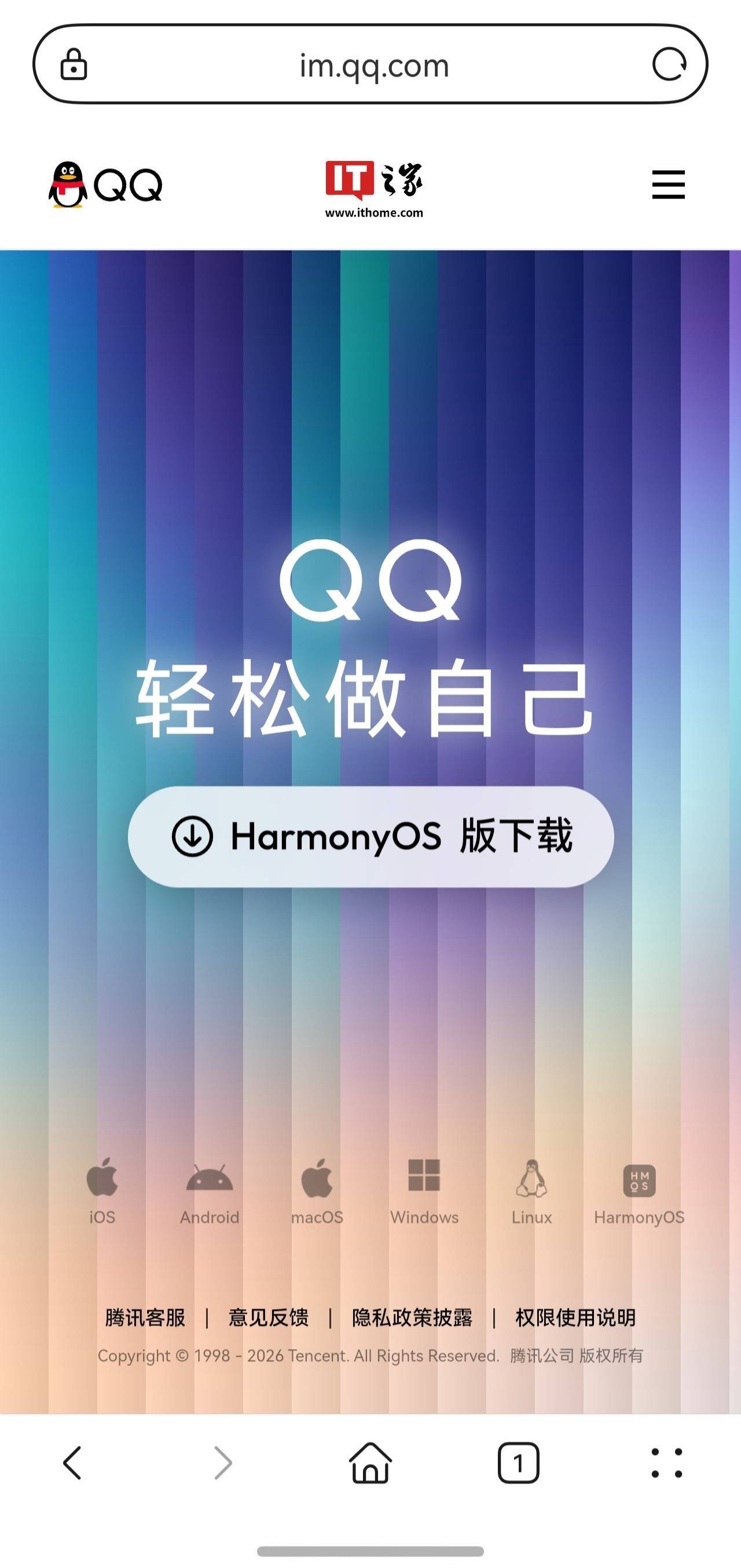 IT之家 1 月 28 日消息好牛,腾讯 QQ 官网现迎来一次更新,除了全新设计外,还新增提供鸿蒙 HarmonyOS 版 QQ 的下载入口(点击后可跳转至华为应用市场 App Gallery 的 QQ 详情页)。